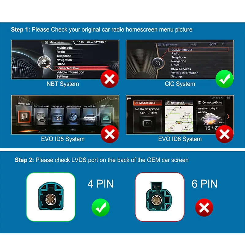 ![]() | Συμβατότητα με το BMW NBT CarPlayΕλέγξτε εάν η BMW σας λειτουργεί με το κουτί αποκωδικοποίησης CarPlay μας επιβεβαιώνοντας το σύστημα NBT και τη θύρα LVDS 6 ακίδων BMW NBT CarPlay CompatibilityCheck If Your BMW Works with Our CarPlay Decoder Box by Confirming NBT System and 6 – PIN LVDS Port |