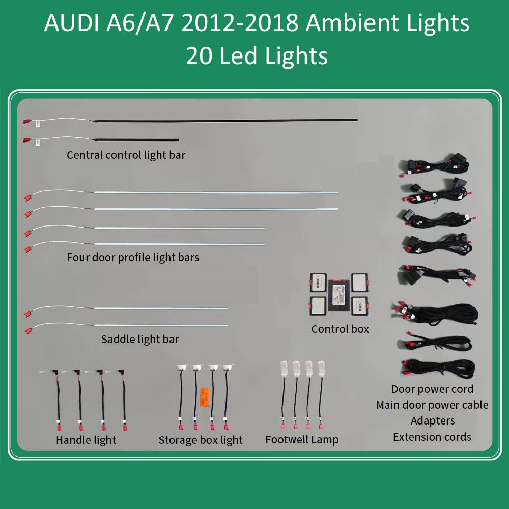 - Standard 20 lights (4 door handle lights, 4 door lights, 4 door storage box lights, 4 footwell lights, 2 central control light,2 saddle light).